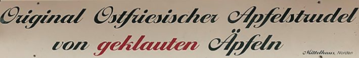 PS: Nur bei uns gibt es den Original Ostfriesischen Apfelstrudel von geklauten Äpfeln! Probieren lohnt sich, versprochen!